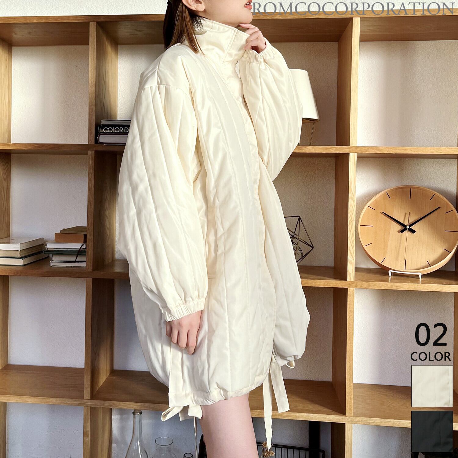 裾のリボンが絞れるので着膨れせずバランスよく着こなせます。