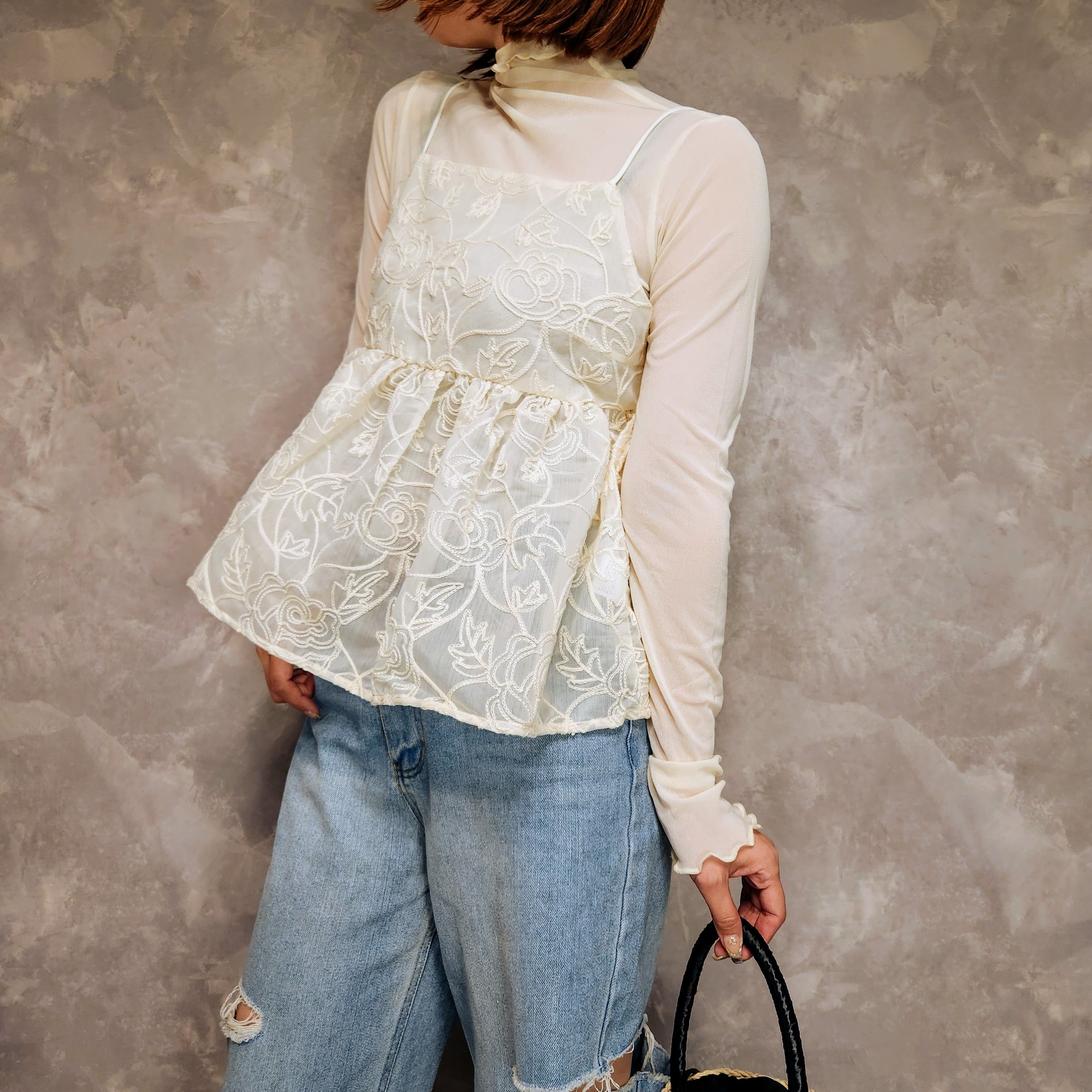 シンプルなメロウ加工のチュールトップス
