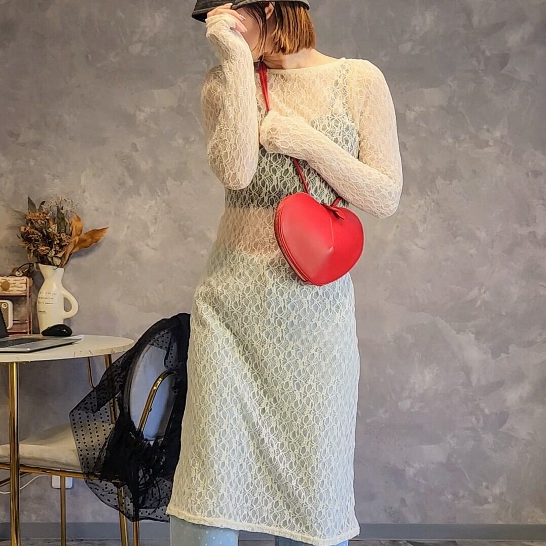 エレガントさ漂う長袖レースワンピース