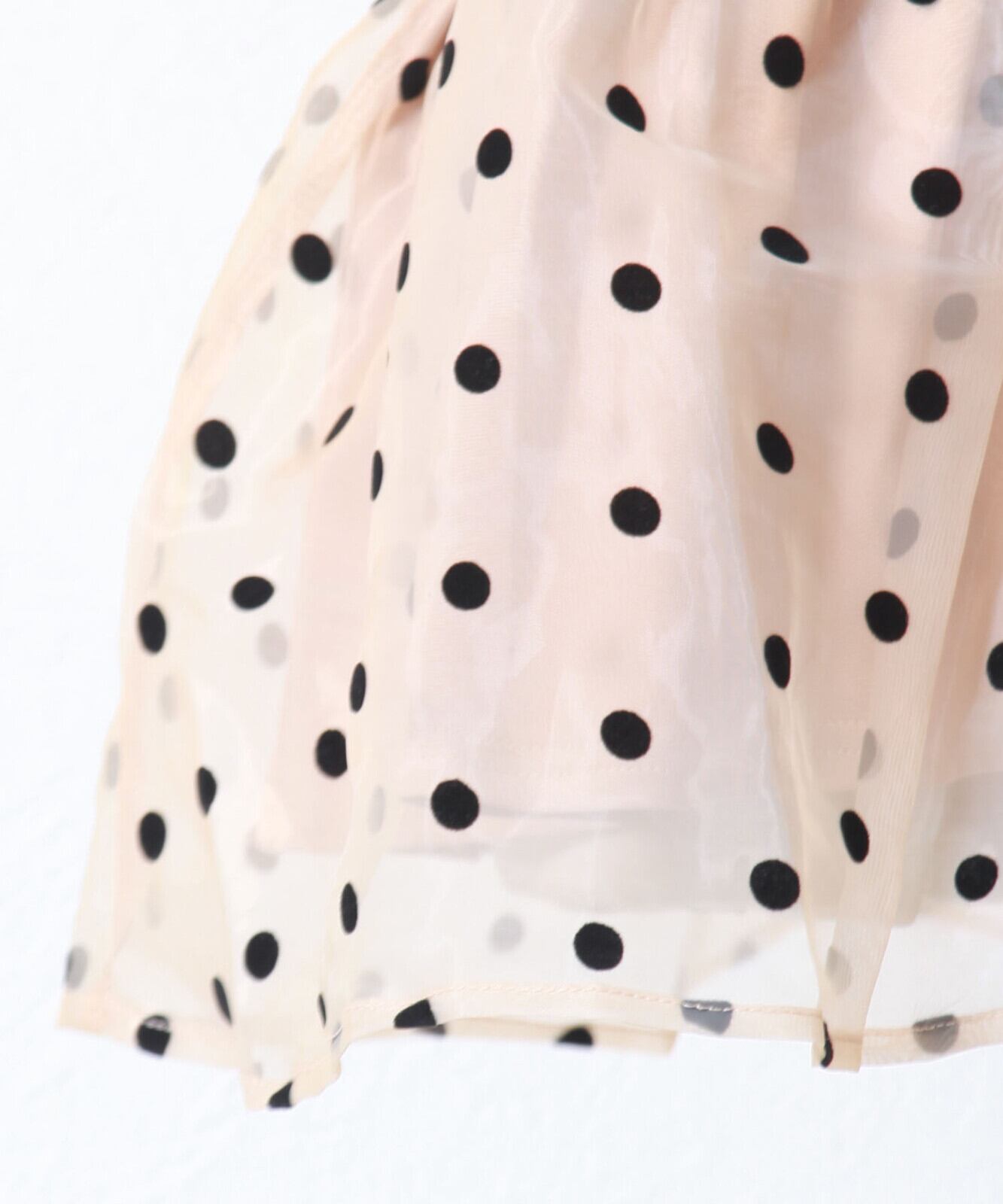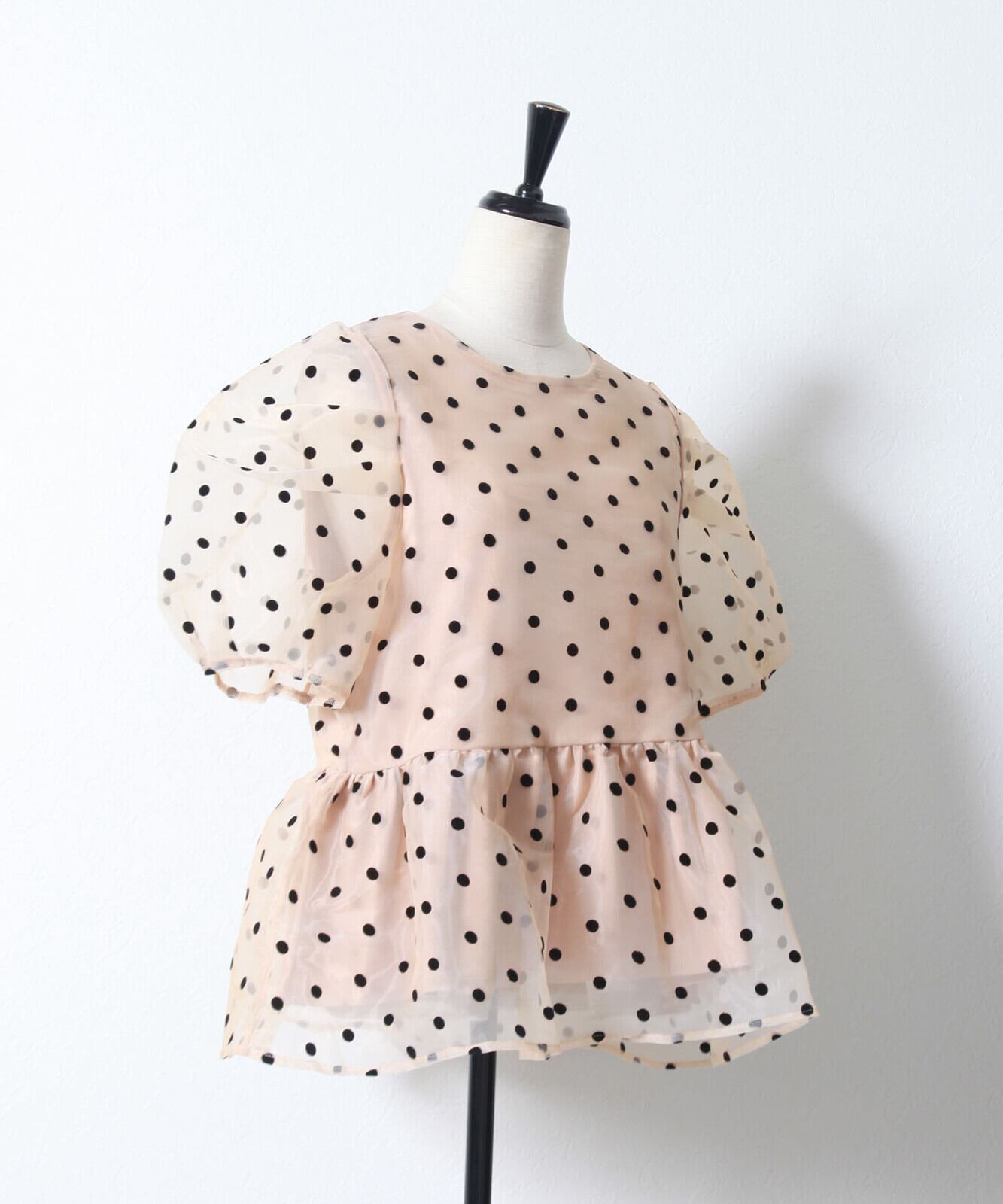 ボリューム袖ドットチュールレイヤードトップス☆ベージュ