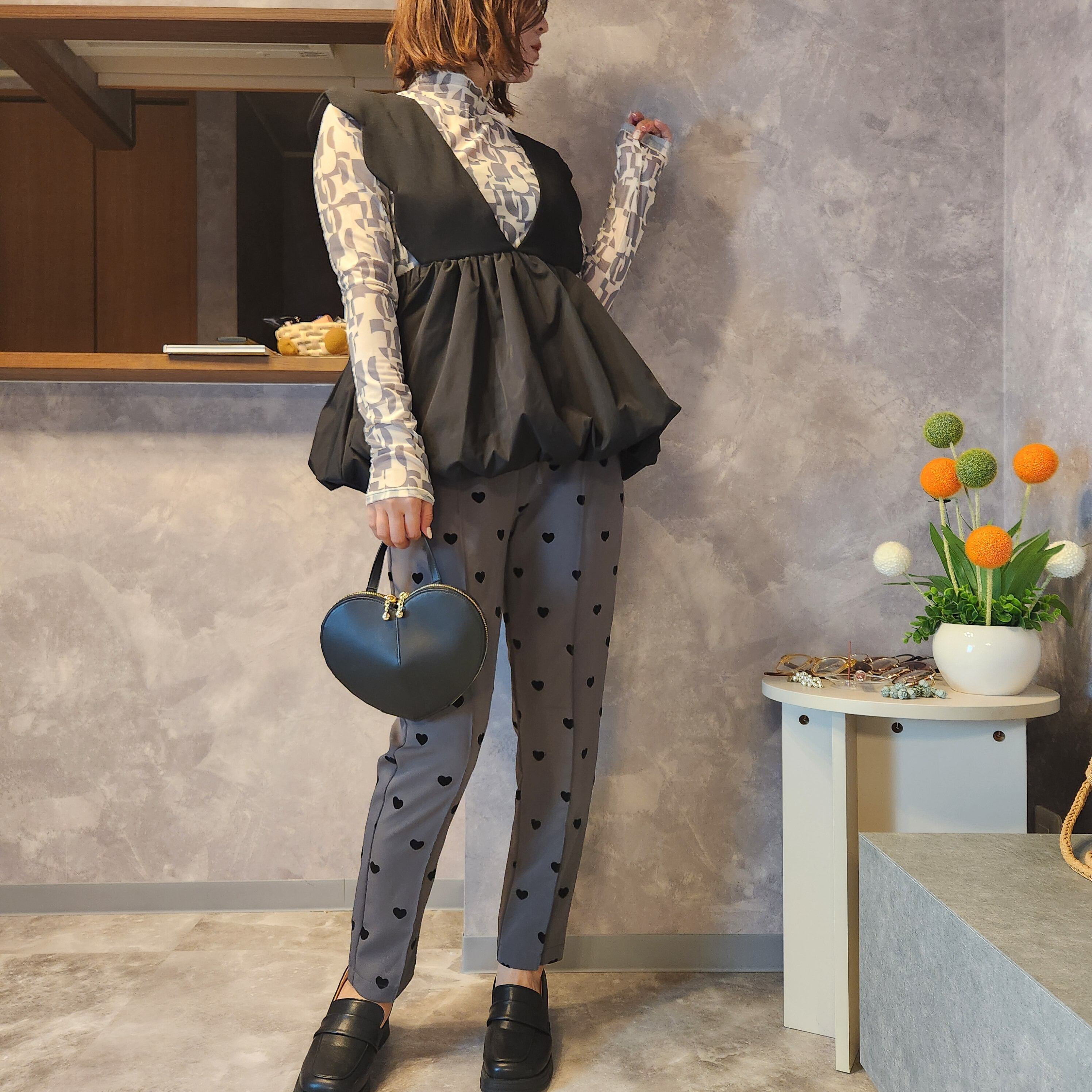 カットジョーゼットスカラップバルーンブラウス☆ブラック